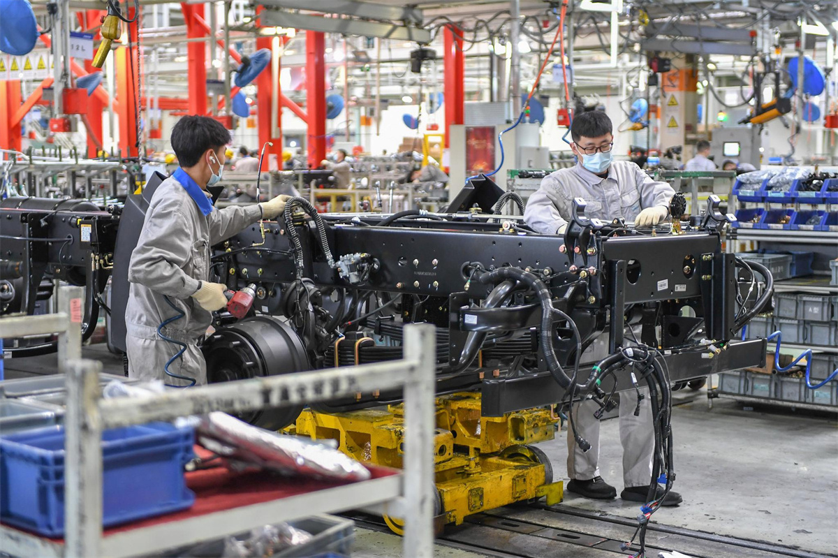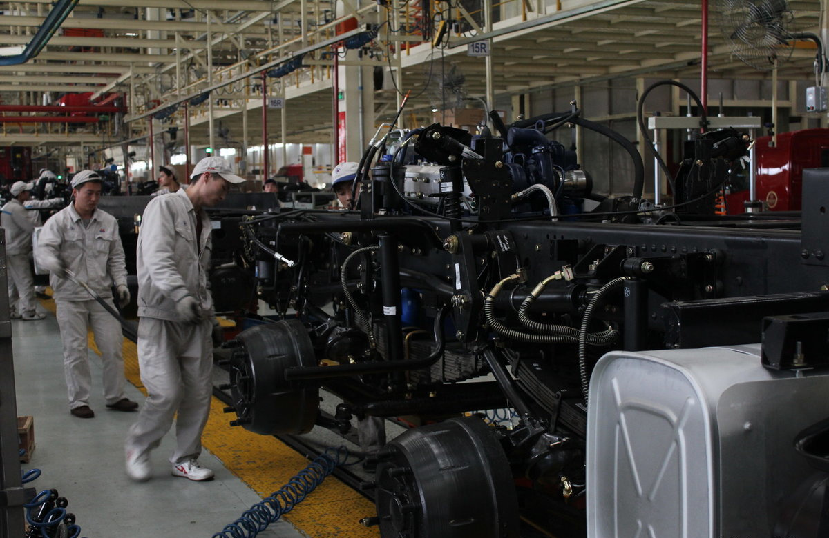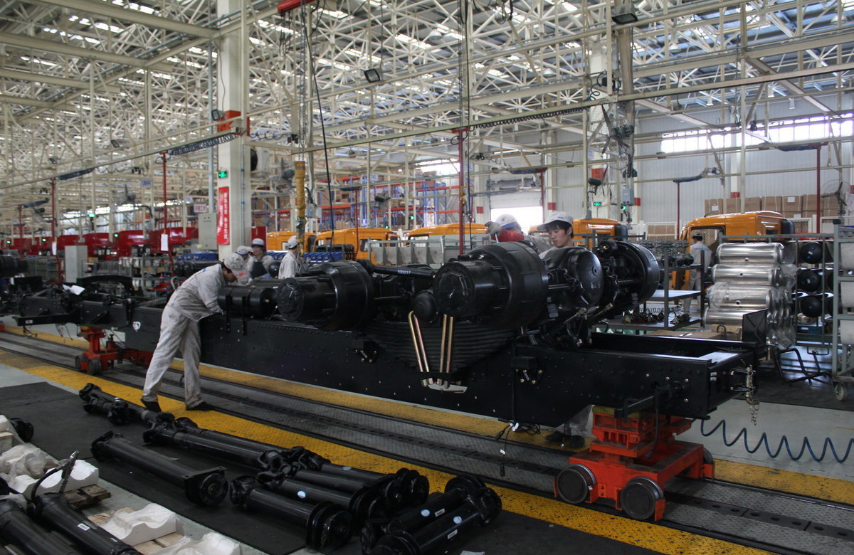 -底盘装配:将发动机、变速箱等与车身组装。
