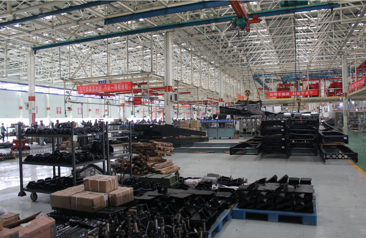-焊接:将冲压件焊接成车身框架,重卡特别注意车架的坚固性。